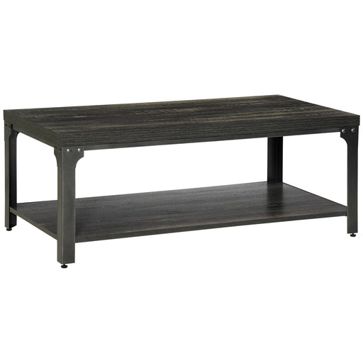 Featuring a modern industrial look with a rustic brown surface and sleek black metal frame, the coffee table complements any room style. Its spacio...