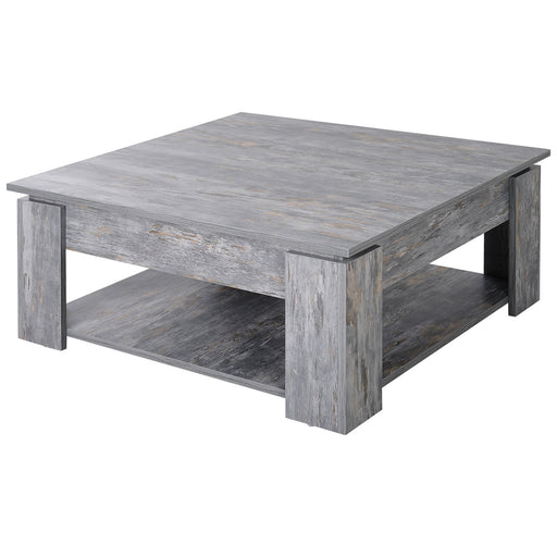 View full detailsModern Grey Square Coffee Table - Living Room Cocktail Furniture with Multiple Storage Shelves - Stylish Space-Saving Design for Contemporary Homes