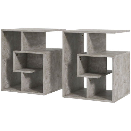 3-Tier Open Shelf Side Table - Living Room End Table Set with Storage Organizer, Cement Color - Perfect for Home Space Saving & Decor, Set of 2
