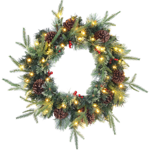 View full detailsAosom UK Pre-Lit 60cm Christmas Wreath - LED Lights, Pine Cones, Red Berries Festive Door & Window Decor - Seasonal Wall Accent for Home and Office