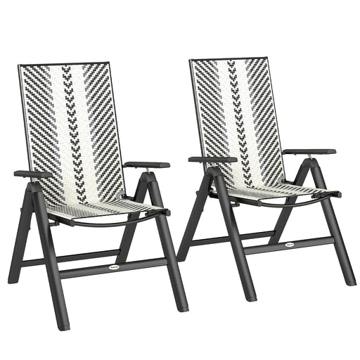 View full detailsOutsunny Outdoor Rattan Folding Chair with 5-Position Adjustable Backrest, Wicker Garden Dining Chair with Wide Armrest, Set of 2 for Patio, Terrace, Balcony, Black