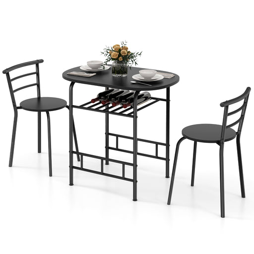 View full detailsDining Table Set, 3-Piece - Black Metal Frame with Additional Wine Rack - Ideal for Small Spaces and Wine Lovers