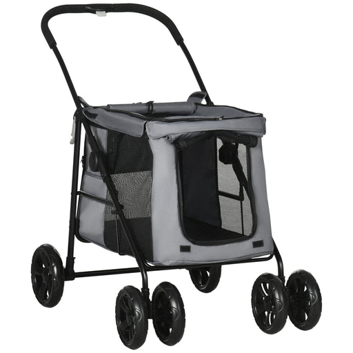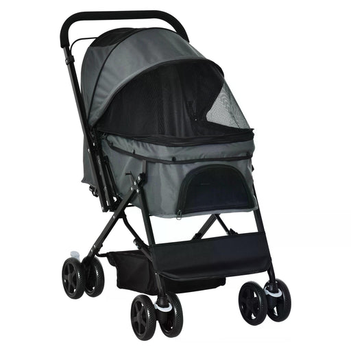 View full details4-Wheel Pet Stroller for Medium Dogs & Cats - Safety Leash, Zipper Doors, Mesh Windows, Storage Bag in Grey - Ideal for Safe & Comfortable Pet Travel