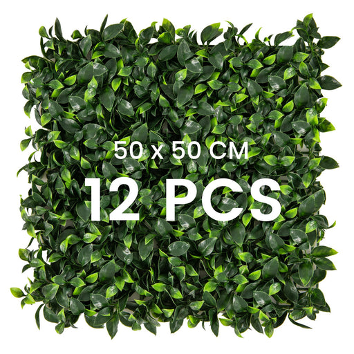 This artificial hedge features 12 intricately designed 50 x 50 cm faux boxwood panels, standing at 7cm high, offering a lush and realistic appearan...