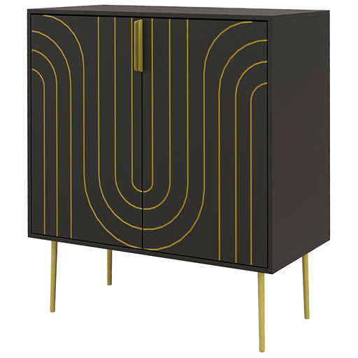 View full detailsArt Deco-Inspired Sideboard with Adjustable Shelving - Sleek Black Finish with Gold Tone Accents - Elegant Storage Solution for Contemporary Homes