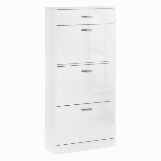 High Gloss Shoe Cabinet with 4 Pull-Down Drawers - Adjustable Storage Cupboard for 18 Pairs, Flip Doors Design - Ideal Organizer for Entryway or Closet