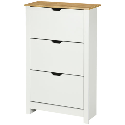 View full detailsSlim Shoe Storage Cabinet - 3 Flip Drawers and Adjustable Shelves, Up to 18 Pairs - Space-Saving Organizer for Hallways, White