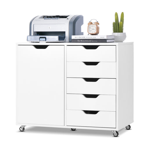 View full detailsMobile Side Cabinet - 5-Drawer, Wheeled, White Design - Convenient Storage Solution for Homes and Offices