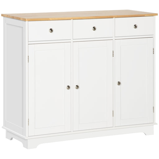 View full detailsModern Rubberwood-Topped Sideboard - Buffet Cabinet with Drawers and Adjustable Storage Shelves - Ideal for Living Room and Kitchen Organization
