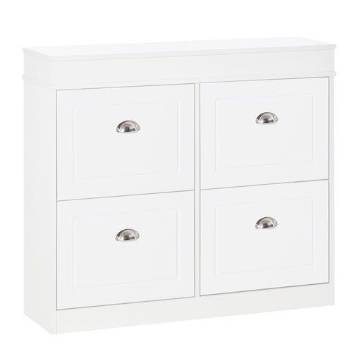 View full detailsWood Tipping Bucket Shoe Cabinet with 4 Flip Drawers - Adjustable Shelf Narrow Storage Cupboard for Hallway - Space-Saving Organizer for Entryway, Foyer in White