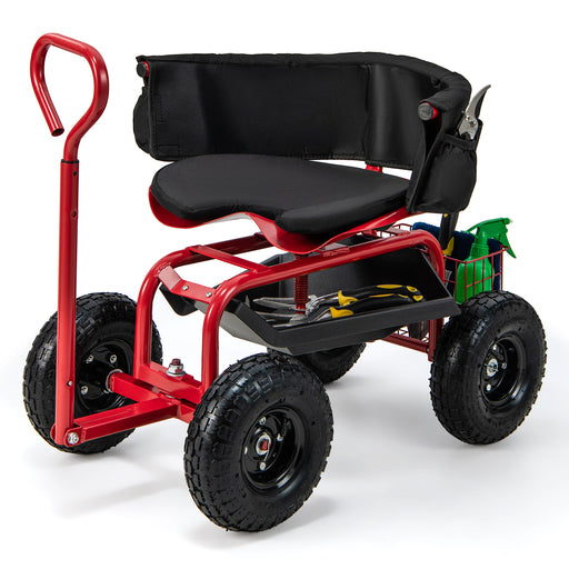 Red Rolling Garden Cart Scooter - Durable Gardening Scooter with Tires - Ideal for anyone with Mobility Issues or who Loves Gardening