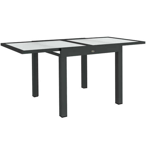 View full detailsOutsunny Extending Garden Table, Outdoor Dining Table with Aluminium Frame and Tempered Glass Tabletop, 80/160 x 80 x 75 cm, Black and Clear