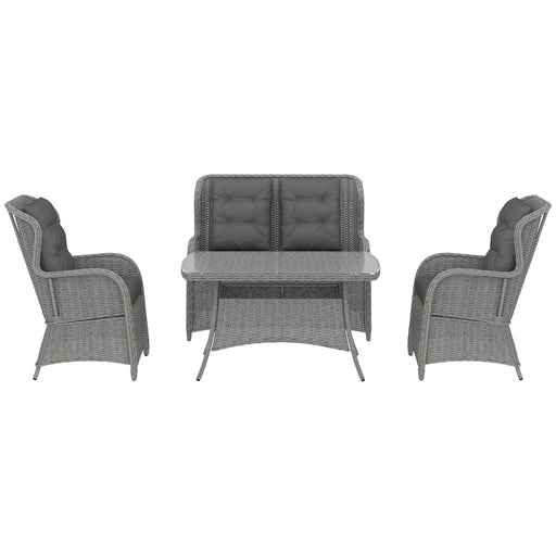 View full detailsOutsunny Garden PE Rattan Dining Sofa Set, Outdoor 4 Seater Wicker Furniture, High Back Chairs with Cushions, Tempered Glass Coffee Table for Patio, Light Grey