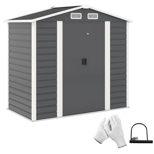 View full detailsOutsunny 7 x 4ft Metal Garden Shed, Galvanised Steel Shed with Double Lockable Doors, Vents and Gloves, Outdoor Tool Storage Shed for Garden, Patio, Dark Grey