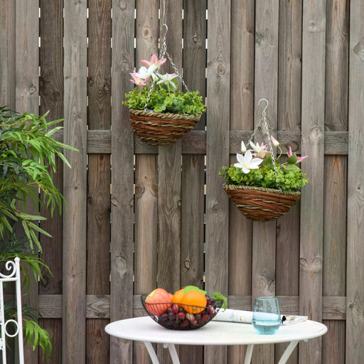 View full detailsArtificial Clematis Flowers Hanging Duo - Pack of 2 Lush Faux Floral Planters for Indoors & Outdoors - Enhance Home & Garden Aesthetics