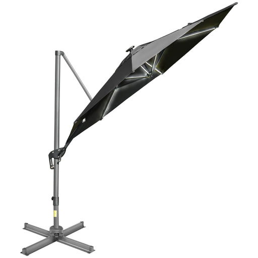 View full details3M Cantilever Roma Parasol - Adjustable Garden Sun Umbrella with Solar LED Lighting, Cross Base & Rotation Feature - Ideal for Outdoor Comfort and Entertaining in Grey