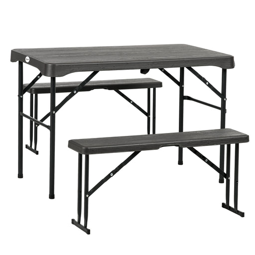 View full detailsOutsunny Folding Picnic Table with 2 Benches, 3-Piece Portable Garden Furniture Set for 4, Dining Table Set with Plastic Top, Steel Frame, Dark Grey