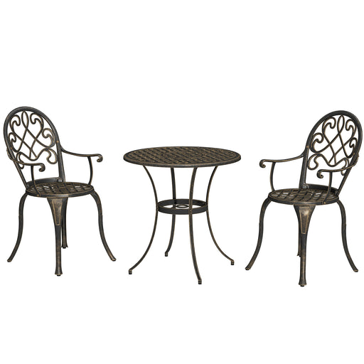 View full detailsOutsunny 3 Piece Patio Bistro Set for 2, Outdoor Aluminium Garden Table and Chairs with Adjustable Footpads for Balcony, Garden and Patio, Bronze Tone