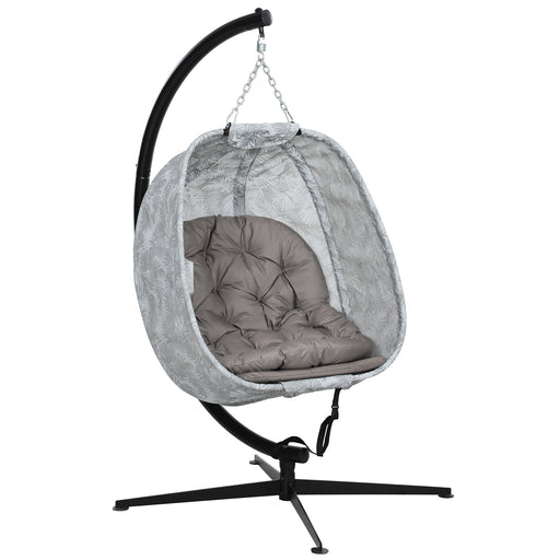 View full detailsOutsunny Hanging Egg Chair Outdoor Indoor Garden Swing Chair with Folding Basket, Thickened Cushion, Garden Hanging Chair with Stand, Headrest for Patio, Balcony, Grey