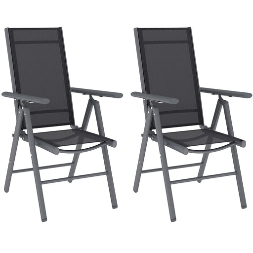 View full detailsOutsunny Set of 2 Folding Chair, Aluminium Frame Outdoor Camping Chairs with Breathable Mesh Back and Seat, Garden Chair Set with Armrests for Patio Deck Balcony, Black