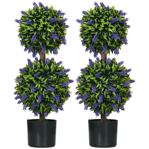 Artificial Lavender Topiary Trees - Set of 2 Faux Flower Ball Plants with Pots, 70cm - Indoor & Outdoor Home Decor Enhancement