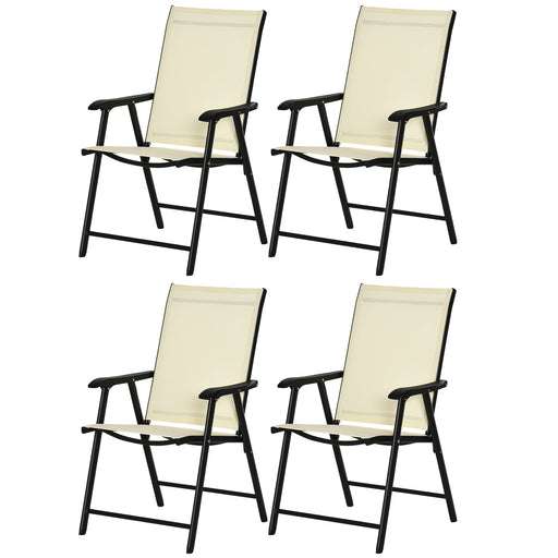 View full detailsSet of 4 Beige Folding Chairs - Metal Frame & Breathable Mesh Seat for Garden and Patio - Ideal for Outdoor Dining and Park Gatherings
