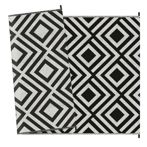 View full detailsReversible Plastic Straw Outdoor Rug - Includes Carry Bag & Ground Stakes, 182x274cm in Black - Ideal for Garden, RV, Picnic, Beach, and Camping Use