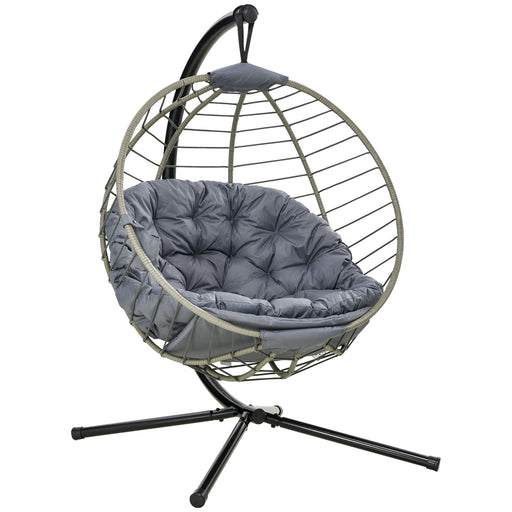View full detailsPE Rattan Swing Chair with Metal Stand - Thick Padded Cushion, Foldable Design & Cup Holder for Comfort - Stylish Outdoor Hanging Chair for Relaxation
