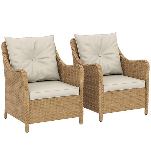 View full detailsOutsunny Rattan Garden Chairs Set of 2, Outdoor Rattan Chairs with Cushions, Armrests and High Back, PE Wicker Garden Armchair with Steel Frame for Balcony, Porch, Beige