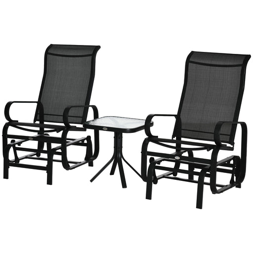 View full detailsOutdoor Patio Glider Rocking Chairs with Tea Table - 3-Piece Comfortable Swinging Chair Set, Black - Ideal for Garden Relaxation and Socializing