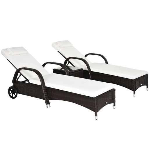 View full details3-Piece Rattan Sun Lounger Set - Adjustable Wicker Reclining Chairs with Cushions and Wheeled Design - Ideal for Garden Relaxation and Patio Comfort