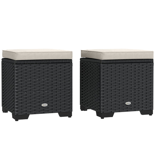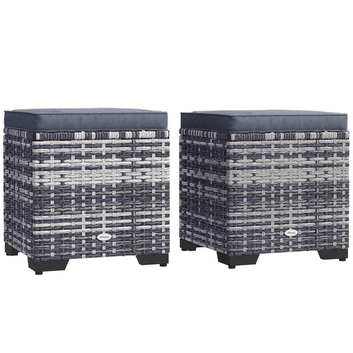 View full detailsOutsunny Set of 2 Rattan Storage Ottoman, Outdoor Footstool with Removable Cushions, Garden Storage Seat for Balcony, Poolside, Living Room, Dark Grey