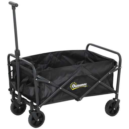 View full detailsOutsunny 62L Festival Trolley on Wheels, Garden Folding Trolley Cart, 120kg Heavy Duty Collapsible Folding Wagon with Adjustable Handle and Carrying Bag for Beach, Camping, Festival, Black