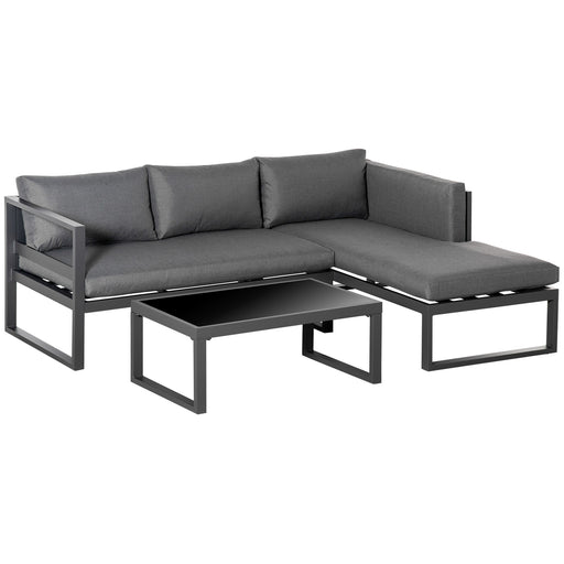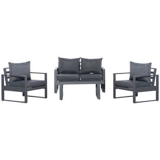 Aluminium Outdoor Lounge Set - 4 Piece Sofa with Coffee Table and Padded Cushions, Dark Grey Olefin Cover - Perfect for Patio and Garden Entertaining