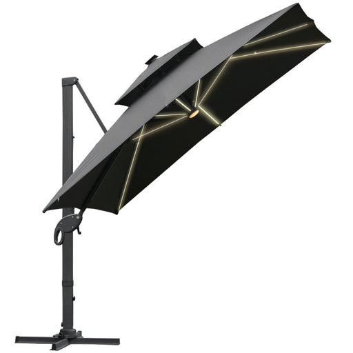 View full detailsCantilever Roma Parasol with LED Solar Light - 3x3m Outdoor Sun Umbrella with 360° Rotation and Cross Base - Ideal for Patio, Backyard in Dark Gray