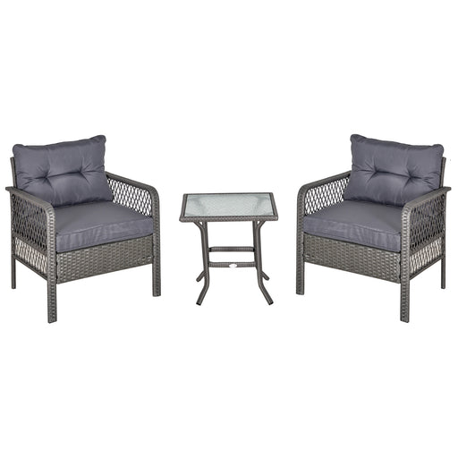 View full detailsOutdoor Rattan Bistro Set - 2-Seater PE Wicker Patio Furniture with Coffee Table and Cushioned Armrest Chairs, Grey - Ideal for Garden and Balcony Conversations