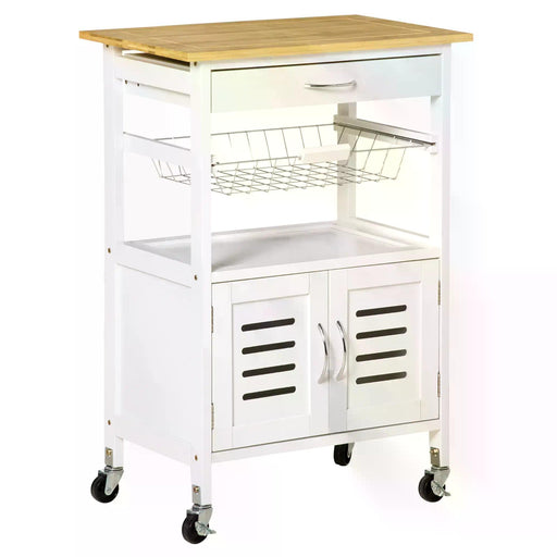 View full detailsKitchen Island Cart with Bamboo Top - Rolling Trolley with Storage, Drawer & Wire Basket - Mobile Utility Cart for Home Kitchen Organization