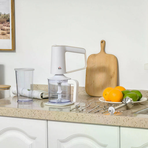 View full details5-in-1 Multi-Function Hand Mixer - 500W Electric Kitchen Appliance with Whisk, Dough Hook, Beater, Blender & Chopper - Ideal for Baking & Meal Prep in White