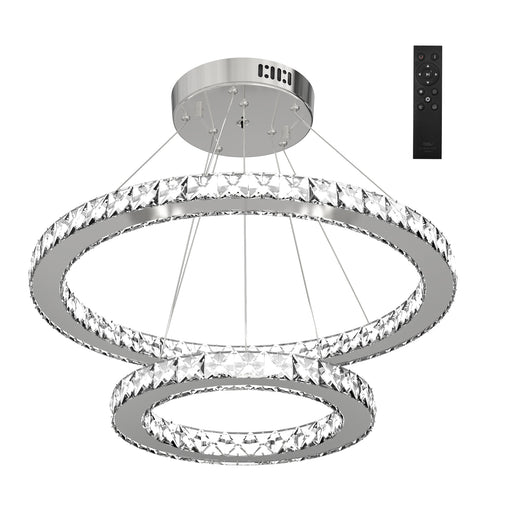 View full detailsModern LED Chandelier with Dual Crystal Rings - Dimmable Pendant Ceiling Fixture with Cool to Warm White Light, Adjustable Cable & Remote Control - Elegant Lighting for Contemporary Home Decor