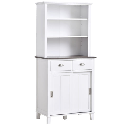 View full detailsFreestanding Kitchen Cupboard with Sliding Doors - Adjustable Open Shelf Storage Cabinet, White - Ideal for Organizing Cookware and Dishware