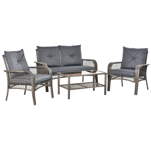 View full details4-Seater Outdoor Rattan Sofa Set - Weather-Resistant PE Wicker Patio Conversation Furniture with Dual-Tier Tea Table & Cushions - Ideal for Backyard & Garden Comfort