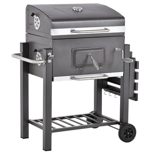 View full detailsOutdoor Charcoal Grill BBQ Trolley with Smoker - Backyard Garden Cooking Station with Side Shelf, Table, & Wheels - Built-in Thermometer for Perfect Grilling Temp Control
