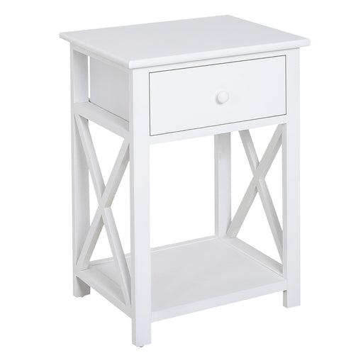 View full detailsClassic Accent Side Table with Drawer and X-Bar Shelf - Compact Design for Living Space and Bedroom - Versatile White End Table with Storage, 40x30x55 cm