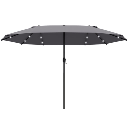 View full detailsDouble-Sided Sun Umbrella 4.4m with Solar LED Lights - Dark Grey Garden Parasol Patio Shade for Outdoors - Ideal for Evening Gatherings & Daytime Sun Protection