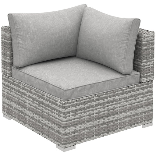 View full detailsPE Rattan Wicker Outdoor Corner Sofa Chair - Single Patio Seating with Cushions in Grey - Ideal for Garden and Deck Relaxation