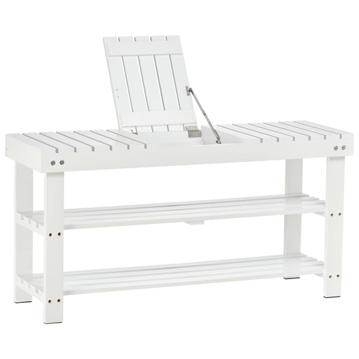 View full details3-Tier Shoe Bench with Hidden Compartment - Wooden Shoe Rack with Slatted Shelves for Home Organization - Space-Saving Hallway Furniture in White