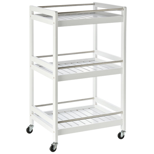 View full details3-Tier Home Trolley - Kitchen and Living Room Storage Organizer with Steel Bars and 4 Rolling Wheels - Space-Saving Mobile Utility Cart for Household Use