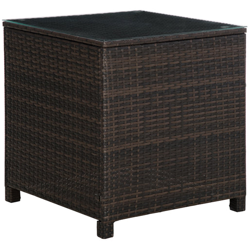 View full detailsRattan Patio Side Table with Tempered Glass Top - Durable Brown Outdoor Furniture Accessory - Ideal for Garden and Patio Spaces