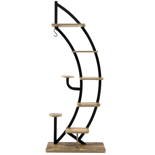 View full details8-Tier Tall Wooden Stand - Curved Half-Moon Shape for Plants with Top Hook in Natural - Ideal for Displaying Houseplants