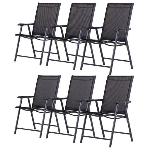 View full details6-Piece Folding Garden Chairs - Metal Frame Outdoor Patio Seating with Breathable Mesh - Ideal for Dining & Parks in Black